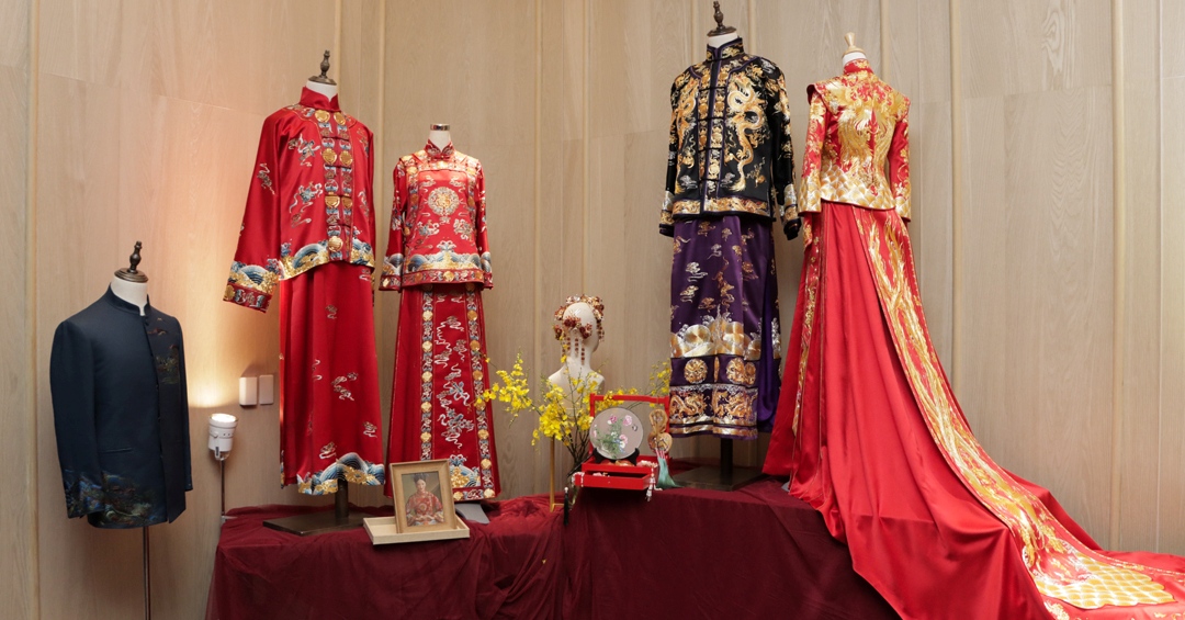 全台最具指標性的中式婚禮品牌於8月18日、19日齊聚高雄洲際酒店,獻上「穿越古今.幸福際遇中式婚禮體驗展,展覽現場由「嘉禮喜事」依循可追溯至西周的古禮「三書六禮」中「禮書」儀制,設計重現古代成親儀式橋段,同時融入「納吉」、「納徵」與「親迎」,透過展演方式呈現,搭配中式婚服品牌「藤薰定制」引入北京空運來台、總價值近千萬的宮廷式婚服,如復刻大都會博物館館藏文物、民國第一時尚名媛黃蕙蘭女士1932年的京繡百子圖平裁旗袍、明朝定陵出土的孝靖皇后紅素羅繡平金龍百子花卉方領女夾衣等,兩日活動共吸引上百對新人參與體驗。