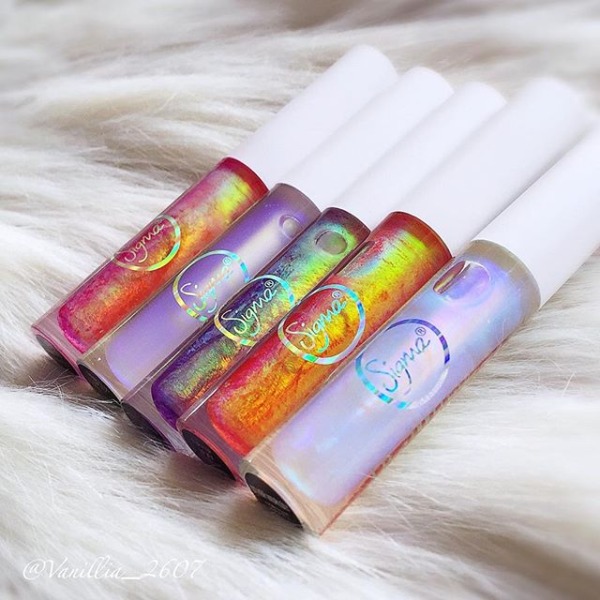 這個厲害的東西是一款名為「Lip Switch」系列的唇蜜,由美國品牌Sigma Beauty推出。嘖嘖嘖!看看它們裝在瓶子裡的樣子,是不是很像某種盛裝魔幻力量的小瓶子,彷彿整個星河、太空都在裡面閃動。