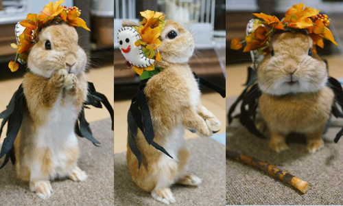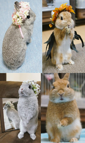 其實這名飼主養了4隻荷蘭侏儒兔,分別叫做馬鈴薯(ぽてと)、核桃(くるみ)、馬龍(まろん)和小石(こいし),主人也會幫兔兔們裝扮,每隻都有自己的性格,牠們的照片表情生動、動作豐富,堪稱兔兔界的萬歲三兄弟,讓人忍不住為牠們加上逗趣的旁白。