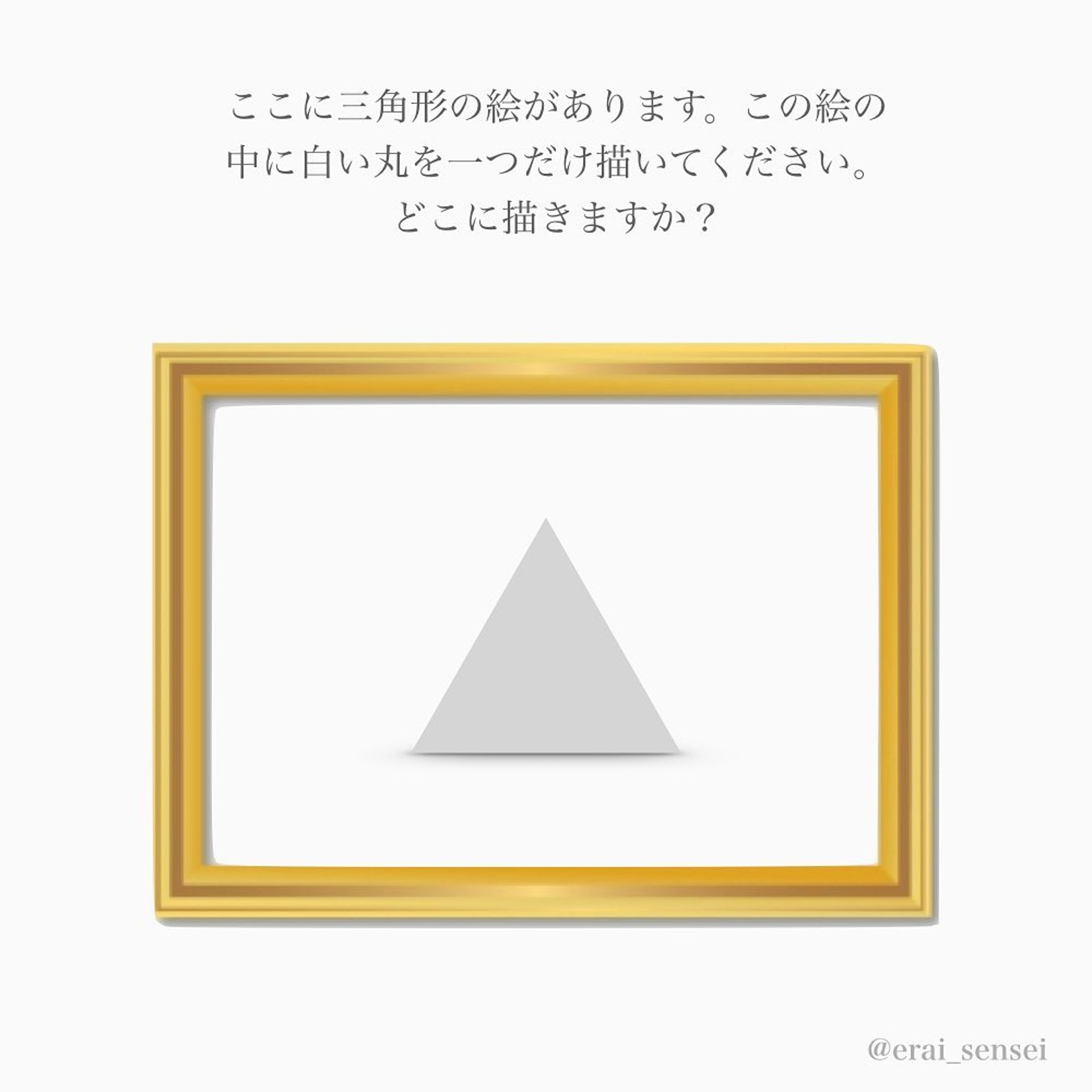 【問題】這裡有一幅三角形的畫。請你在這幅畫上憑直覺畫一個白色的圓形。