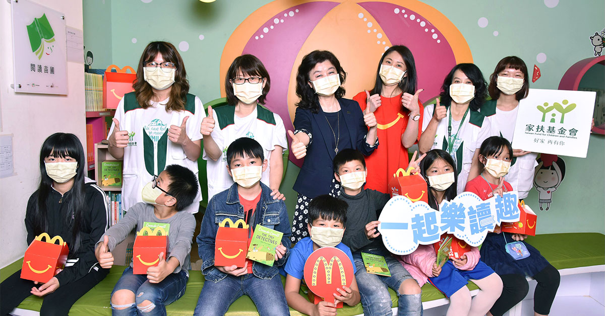台灣麥當勞長期深耕家庭市場,提倡用心讓陪伴更有意義,引導親子以共讀的方式陪伴、快樂成長,每月推出不同主題的雙語讀本,讓親子一起享用美食,同時體驗美好共讀時光,用心在一起!為讓更多孩子愛上共讀,麥當勞攜手家扶基金會,響應4月23日世界閱讀日,提供超過6,000冊雙語讀本,給家扶基金會全台各地受扶助的學童,並由社工老師帶領孩子共讀;不論多遠的角落,家扶的孩子都可以「一起樂讀趣」,透過共讀感受用心在一起的美好陪伴,並且可將讀本帶回家與家人分享,創造更多快樂共讀的回憶!