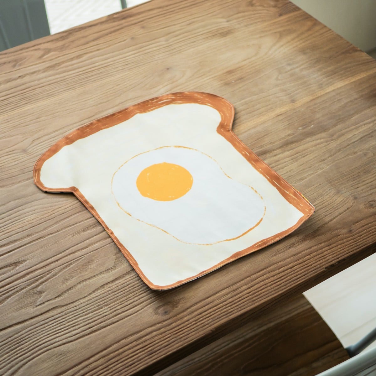 由 pu・pu・pu 推出的「荷包蛋吐司防潑水餐墊」,把半熟蛋黃和焦脆吐司當作靈感,擬真程度超高。防潑水材質讓用餐更安心,也讓日常餐桌多了點儀式感。