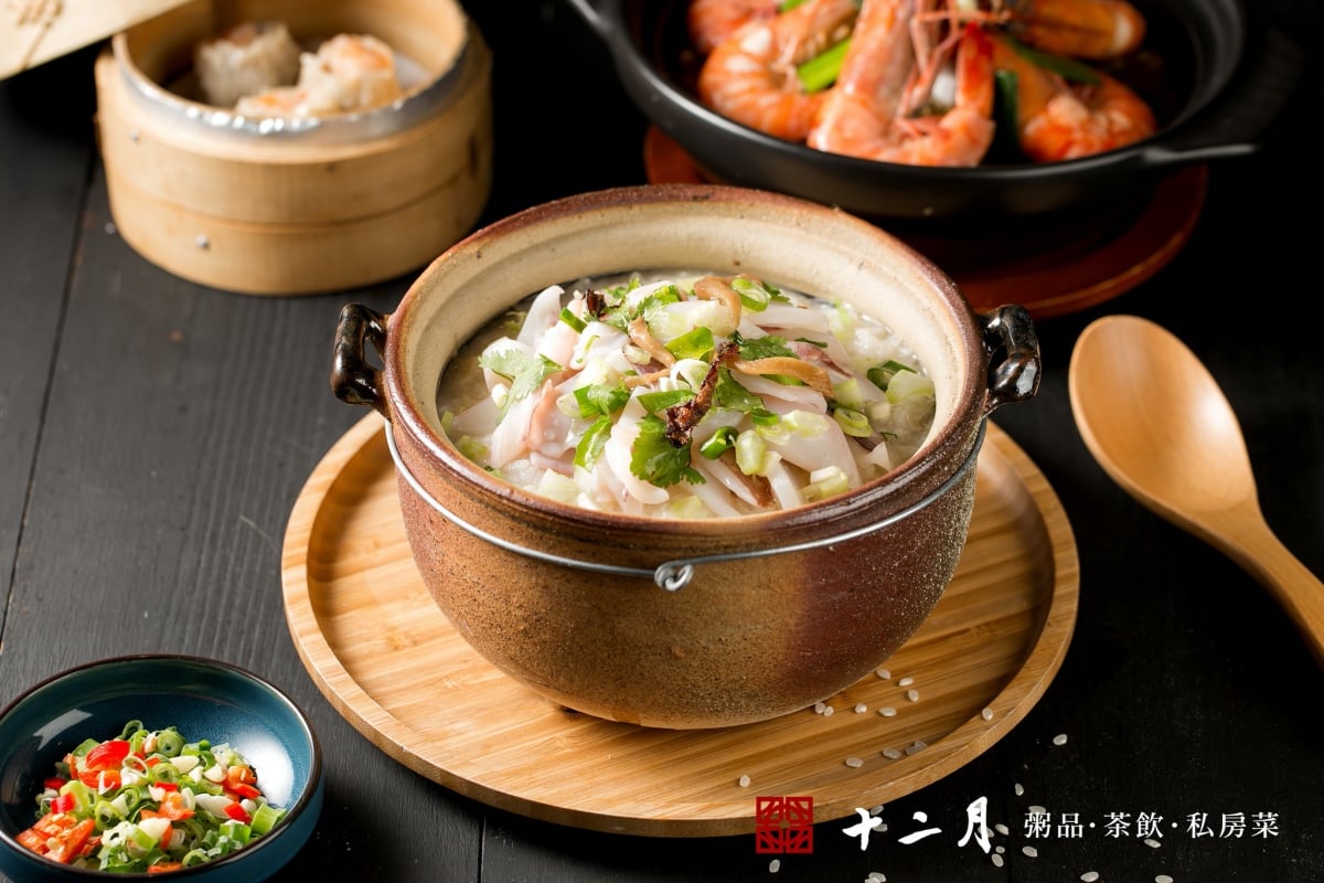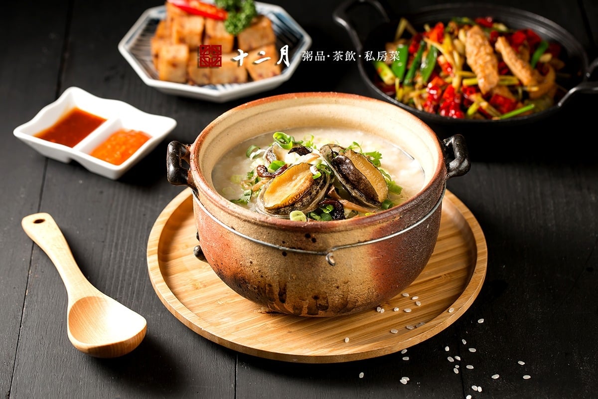 知名連鎖粥品專賣店「十二月粥品」,依照十二個月節令推出不同食材入菜,並使用土砂鍋熬煮,將食材精華都釋放在粥裡。他們家的粥品選擇十分多樣,包含了招牌的鮮蝦粥、進補必吃烏骨雞粥和超奢華的紅蟳粥,還能依人數做份量調整,一個人來也能品嚐唷。