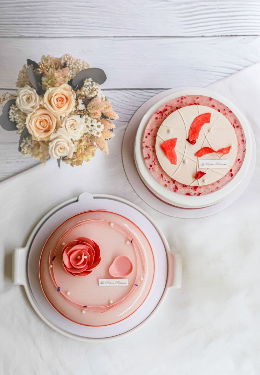 職人級法式甜點品牌「法絨法式手工甜點 Velvet Patisserie」,今年母親節特別推出兩款主題,第一款「梔子花」主題蛋糕,以白色梔子花瓣配上藍色矢車菊,再用金箔點綴,口味上能嚐到手作焦糖蘋果醬和伯爵香草香提,最後被茶香酒香果香完美收服。第二款「Ruby」主題蛋糕,以比利時純天然紅寶石巧克力為主體,配上紅色及粉紅色玫瑰花瓣點綴,一入口是滿滿的玫瑰荔枝香氣,隨之而來的荔枝檸檬香提,瞬間解膩且口感清爽滑順。