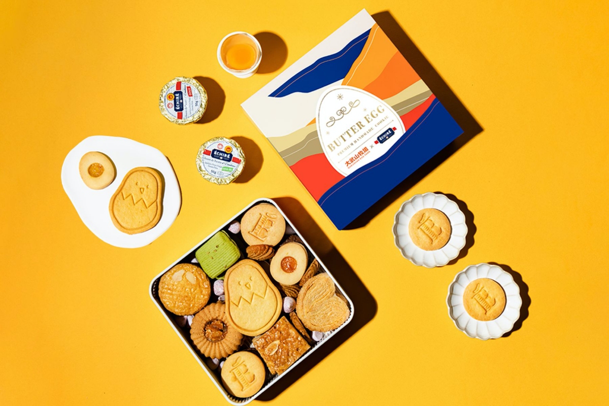 鮮蛋專家「大武山牧場」再度與人氣甜點品牌「法朋烘焙甜點坊 Le Ruban Pâtisserie」合作,更重磅加碼與被譽為奶油界愛馬仕的「ÉCHIRÉ艾許奶油」,三方聯名推出限量「Butter Egg頂級手工餅乾禮盒」,除了經典造型的小雞餅乾,與雞蛋造型杏桃果醬餅乾外,更特別以艾許奶油原味餅乾、經典艾許蝴蝶酥,將鮮蛋與奶油巧妙融合進不同的元素中,超澎湃的組合,讓人一口接一口停不下來。
