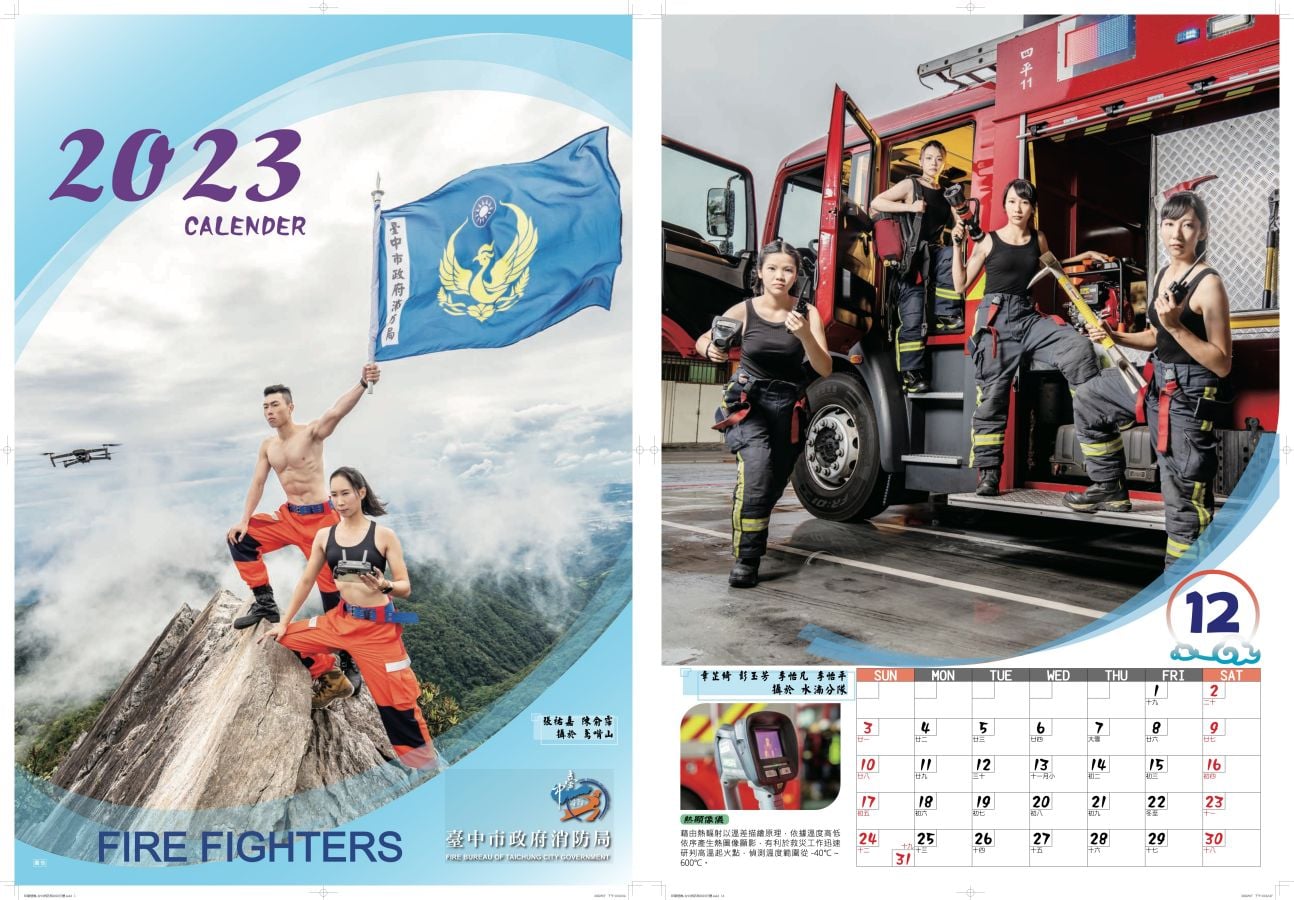 除了新北市以外,不可錯過的還有「2023台中市消防形象月曆」!今年以「女力崛起・專業展現」為主題,有14位男女主角擔綱形象大使,不管是漂亮的雙胞胎姊妹、練就一身肌肉的猛男,還是專業急救醫療技術的高級救護技術員通通有,團隊更遠征海拔2,180公尺的鳶嘴山拍攝封面呢~