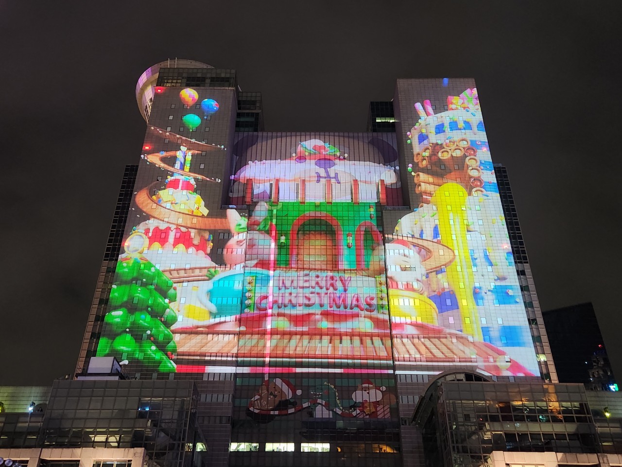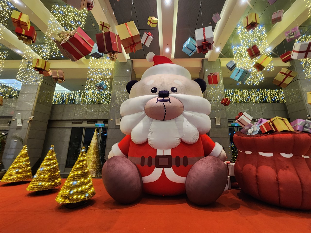 每年的耶誕城都不斷突破去年的規模,找來了許多知名IP角色合作,而今年將目標放在點燈的技術上,不只是光雕展演面積是歷屆最廣以外,更在市民廣場打造了一場「耶誕甜蜜派對Sweet Xmas Party」燈區,巨型禮物盒造景「巧克鼠歡樂頌」以及童趣歡樂的「桑塔熊FUN樂園」。