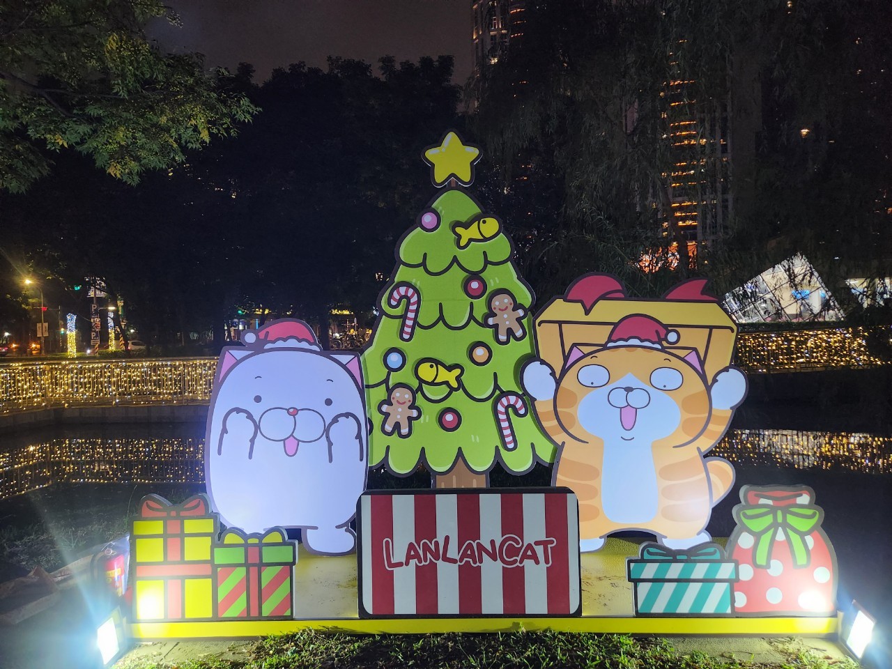 而萬坪公園則是設計成「白爛貓的甜蜜耶誕派對LAN LAN CAT Sweet Xmas Party」燈區,歡樂又溫馨的白爛貓耶誕派對布置,還有「白爛貓的29個舞臺」,將新北饒富趣味的地景及在地特色美食,以幽默風趣方式現身新北歡樂耶誕城!