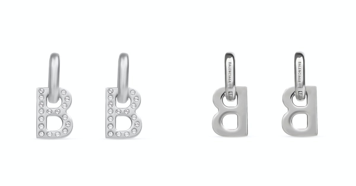 迷你的LOGO耳環同樣也很值得關注,BALENCIAGA的B CHAIN XS EARRINGS以銀色金屬和水鑽結合,打造出這款有點Y2K感的銀色耳飾,正反兩面看都有不同的感覺!另一面刻有巴黎世家的英文LOGO,展現低調的小奢華感!