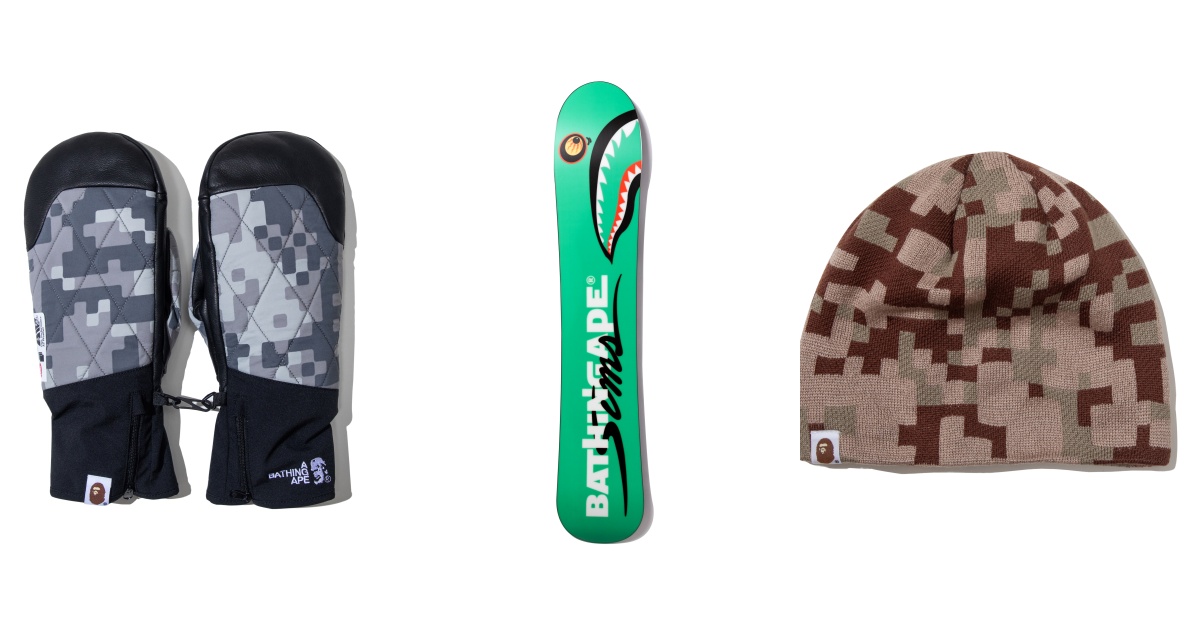 此外還有 雙面羽絨外套、超暖的 極地絨毛可拆卸褲、舒適的中層保暖單品,再搭配毛帽、手套、雪地鞋,甚至是 BAPE® SIMS 單板滑雪板,讓整套滑雪造型從頭到腳一次搞定。