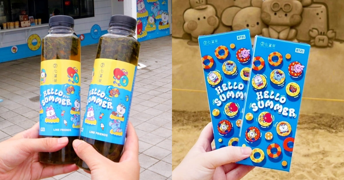 每年夏天絕不能錯過的福隆沙雕展,妞妞們都去了嗎?此次沙雕藝術季打造了可愛度爆表的夏日明星派對,七盞茶進駐彩虹商店,推出兩款商品包含「山萃烏龍冷泡茶」、「七盞紅萃冰棒」,包裝還是超萌的宇宙明星BT21,各位ARMY們別錯過!