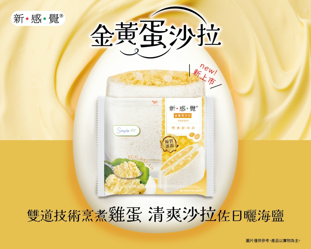 近年民眾對於飲食的要求,「新感覺」重視食材並層層把關,新品「金黃蛋沙拉」不僅選用可溯源牧場的雞蛋,提味用鹽更是來自地中海潔淨海域的日曬海鹽;同時以雙道烹煮製程煮蛋,讓蛋白丁更加彈嫩,以黃金比例調和成就口感,吃下去不只是豐富整體餡料的層次感,也是一份暖心。不論是準備考試的學生族群,還是需要活力的上班族,都適合做為開啟一天活力的早餐,或是做為簡單補充的下午點心,輕巧吃出日常生活的質感品味!