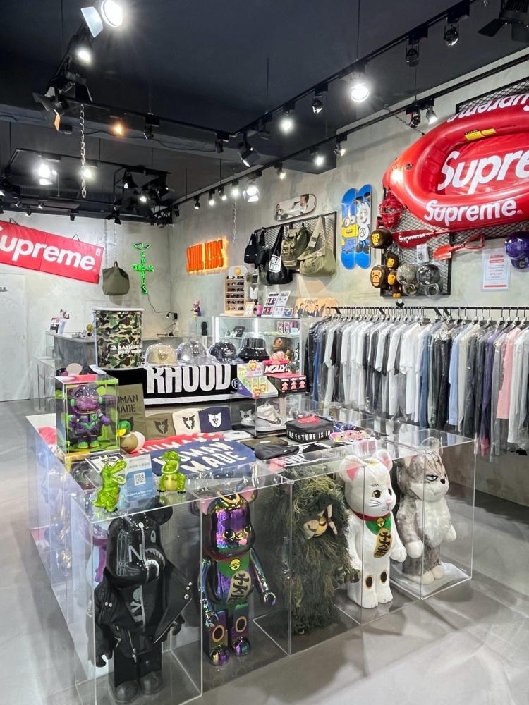 店內匯聚了眾多國際知名品牌,如NIKE、Adidas、HUMAN MADE等,從街頭風格的球鞋、潮牌服飾到流行玩具公仔,無論成人或小孩,都能找到屬於自己的特色單品和親子裝選擇。在這裡,每個人都能感受到潮流和親子互動的獨特氛圍。