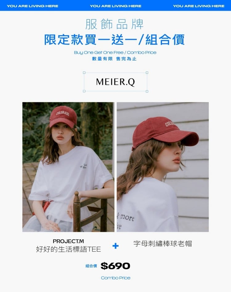 【MEIER.Q】買 PROJECT.M 好好的生活標語T 送 字母刺繡棒球老帽 組合價 $690