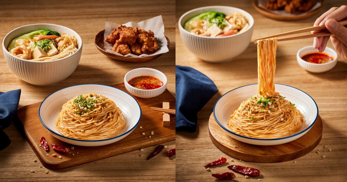 台式炸雞X川味主食迸出創意新滋味!繼光香香雞3/24(四)起攜手自2021起連續2年榮獲米其林餐盤的「麵廊Meelang」融合「台式炸雞、獨家滷味系列」及「麵廊拌麵料理」,研發出三款獨家拌醬及川味特色拌麵,與台式炸雞第一品牌-繼光香香雞強強結合,全台僅於台中中山旗艦店、台中新時代專櫃、高雄skm park專櫃3間門市獨家販售!