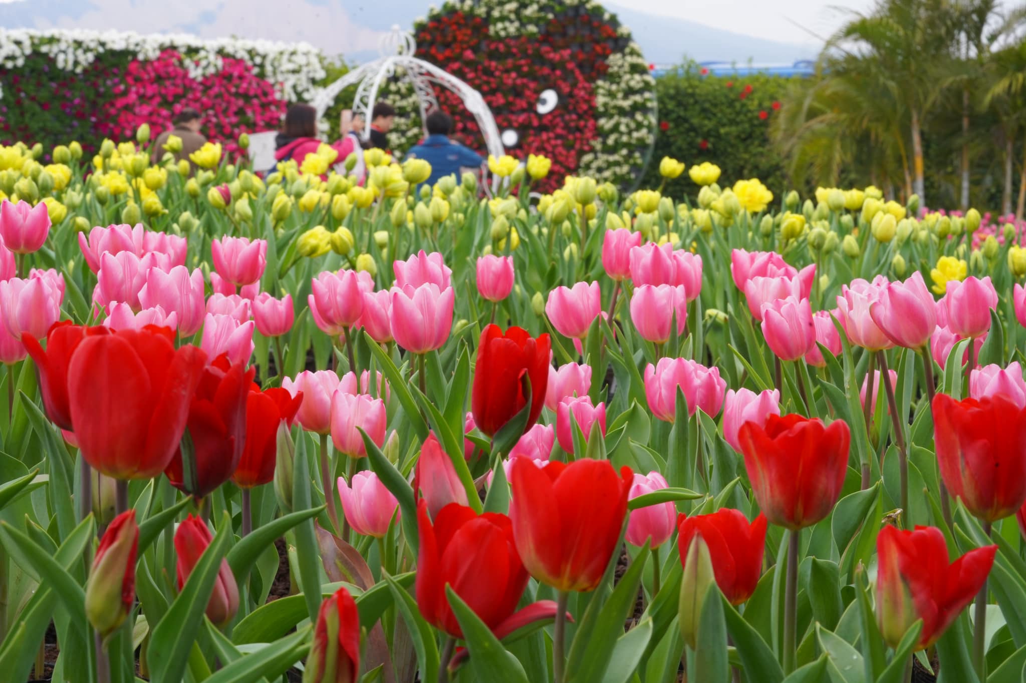 最有年味的代表花卉「炮仗花」,在中社花海裡全面盛開中,橘紅色的花牆超適合迎接農曆新年,搭配後方的火炎山,怎麼拍都是時尚大片呀;1月到3月期間更是「中社鬱金香花季」,各種不同顏色的鬱金香,就像是一秒穿越時空來到荷蘭鬱金香花園了呢,而且中社觀光花市春節不打烊,新年走春超適合來一趟呀!