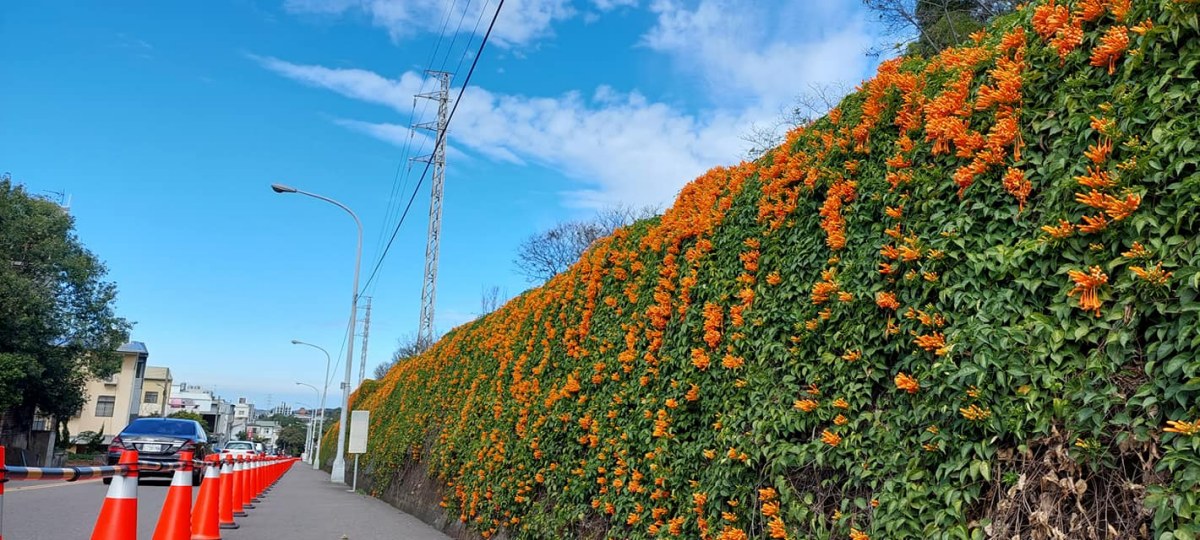 除了最知名的炮仗花公園以外,位於後龍的「五德宮」也有美麗的炮仗花海喔!紅色的磚牆搭配茂密的橘色花海瀑布,牆邊的椅子剛好是妞妞們拍美照的最佳站位點,重點是這裡好停車又不多人,花仙子們快來踩點吧。