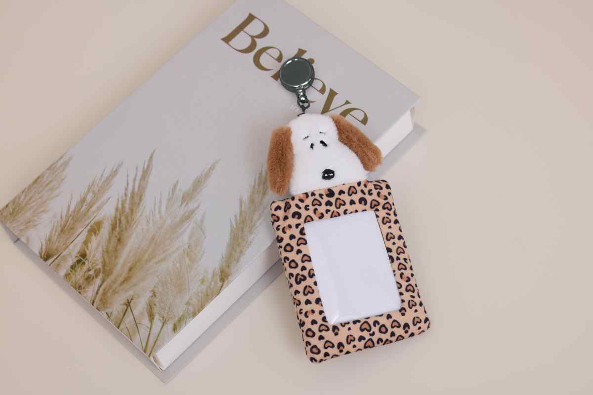 大寫的可愛!絨毛材質的伸縮卡套,上面還有咖啡色的大頭SNOOPY趴在上面,直接原地融化,愛心風豹紋框框搭配透明視窗有拉環設計,可以放通勤悠遊卡或是上班識別證。加購價NT.199
