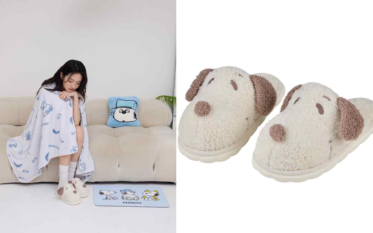 SNOOPY大頭搭配白色與淺咖的柔和配色,結合毛茸茸的手感設計,加上防滑氣墊鞋底,穿起來柔軟舒適還很好走,適用尺碼34-42號。加購價NT.499
