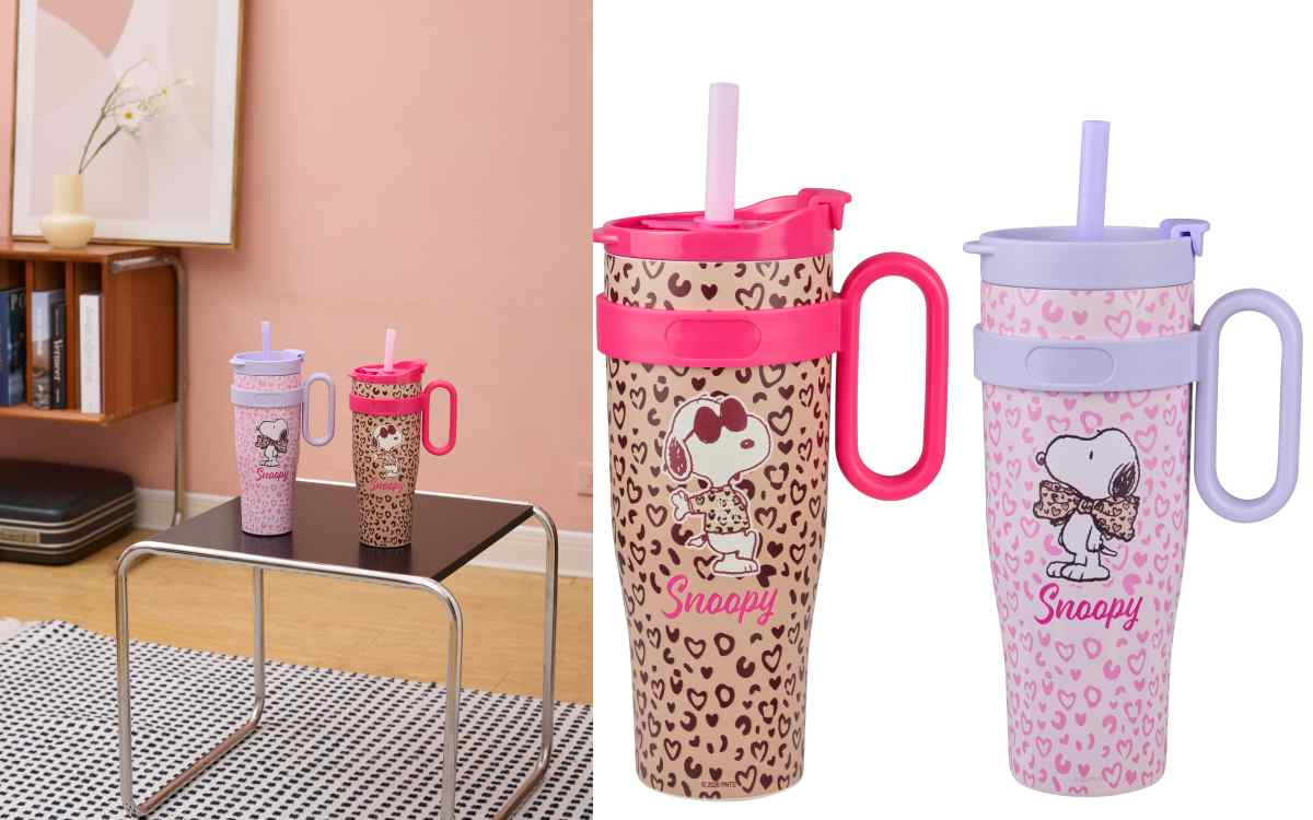 找到多喝水的動力了!SNOOPY提把冰壩杯推出粉色、咖啡豹紋兩款,不管是戴墨鏡耍帥,還是別上豹紋蝴蝶結的SNOOPY都讓人好心動。提把設計方便攜帶,1200ml大容量,平常放在辦公室喝水也超方便。加購價NT.599