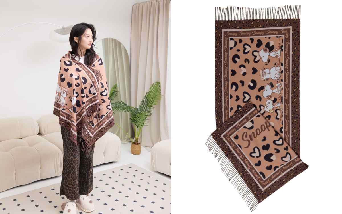 SNOOPY也能為日常穿搭注入亮點!這次推出披肩圍巾,可以當作圍巾或是隨性披肩,靈活搭配穿搭。加購價NT.299