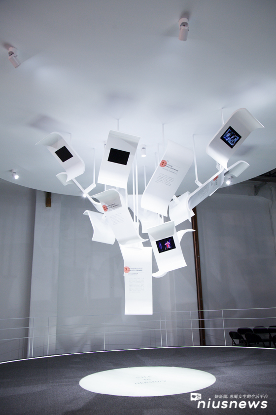 展區共分為五大展區,第一區「HERstory」精選了S.H.E 15週年來的八大事紀,以樹狀排列搭配影音的方式呈現,不管你是鐵粉還是半路出家,都可以一次掌握S.H.E的出道歷程。