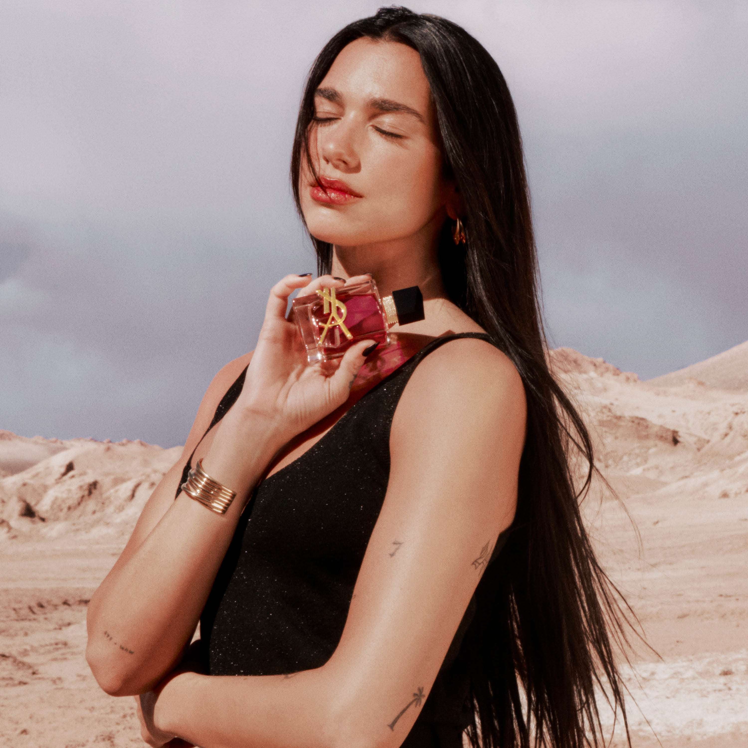YSL BEAUTY 全球品牌大使 DUA LIPA 再次化身自由象徵。她的存在本身就代表自信流動能量,帶著率性、無需言語的性感光芒。在全新【YSL自由不羈沁心之果香水】形象廣告中,她仰首咬下一顆熟成莓果,輕甜酸意瞬間在舌尖炸開、沁莓果汁沿著指尖滑落暈染唇瓣,隨後化為柔潤果香層層漫開,帶著沁心與微醺的愉悅將感官全
