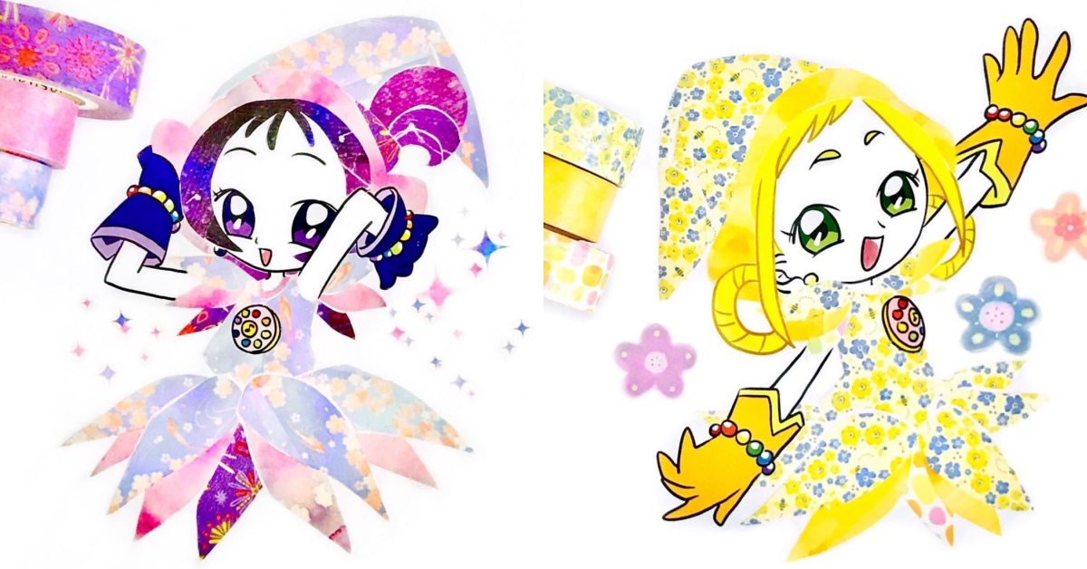 貳零依照DoReMi的服裝色系,選用了素色桃紅款式以及花瓣飄落的圖案,背景則是使用了音符與月相的白底紙膠帶來自由拼貼,不只選用的款式色系和諧,連魔法棒、見習生轉換器都神還原,遠看和原著漫畫根本相差無幾!
