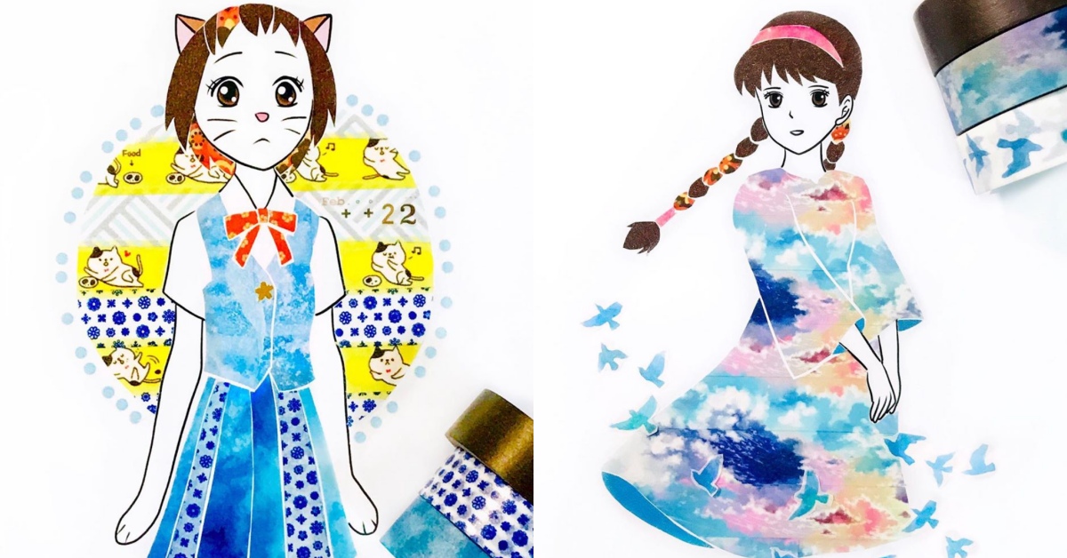 小魔女們繽紛的服裝也是可以隨意運用的空間!只要使用同色系的紙膠帶,就能打造出衣服上不同的層次感,頭髮若是貼上漸層的款式,更可以讓作品有種浪漫又夢幻的魅力。