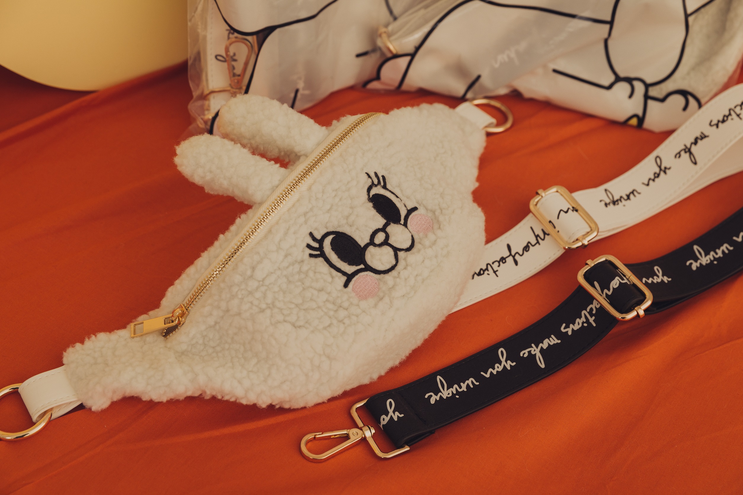 今年依舊大勢的「腰包」,是每個名人私服必備的配件,這波聯名推出「毛茸茸拉鍊腰包」,直接把兔兔耳朵立體神重現,根本是揹了一隻莉可兔在身上啊!與字母揹帶、金色拉鍊混搭,穿上休閒單品也很好搭~