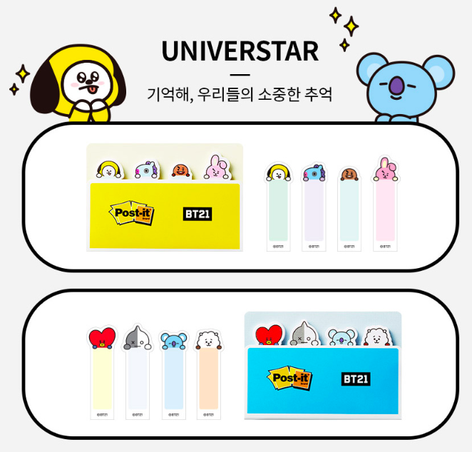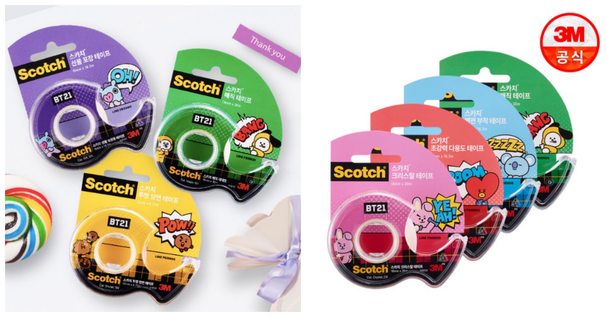 BT21新款聯名又來放火燒大家一波囉~(荷包拉鍊再度被打開)這回宇宙明星與文具品牌3M合作,推出了一系列既可愛又實用的文具周邊,BT21眾成員們將化身成膠帶、便利貼、立可帶、口紅膠等文具陪伴兼療癒你的讀書&辦公時光!