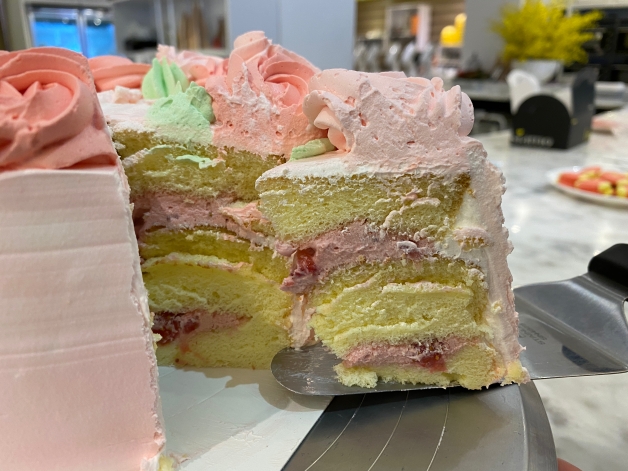 壓軸重頭戲「金喜連連」,生日流行送現金禮盒,過年怎麼能輸呢?這是一款藏有寶藏機關的蛋糕,基底為鬆軟綿密的「戚風蛋糕」,中間夾著覆盆子果泥和鮮甜草莓,想要藏紅包進去的妞妞們,建議大家最多放10張平整的鈔票,以免抽出時大失敗,妞編輯覺得金喜連連上桌,拉出新台幣現金整個超霸氣,瞬間贏其他學霸親戚!(誤)