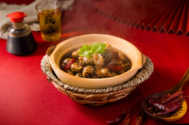 另道老饕必點的「辣酒煮鳳螺」,將肉質肥厚脆彈的鳳螺與馬來西亞參巴醬、花雕酒、蠔油及獨門配方共同烹煮入味,醇厚鹹香中帶著微微的辛辣感,保證讓人胃口大開,堪稱店內下酒菜NO.1。