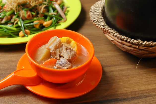 會隨著季節更換的每日例湯,本季以正宗港式煲湯手法,將紅蘿蔔、青蘿蔔、水果玉米、杏仁、無花果、豬蹄膀等嚴選食材,以大火熬煮5小時,用心呈現「青紅蘿蔔煲豬蹄膀湯」,僅以鹽巴簡單調味,也能引出溫潤清甜的迷人風味。