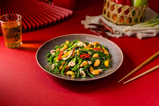 香港餐廳必備的「富貴小炒皇」,主廚精心取用韭菜花前端15公分、最為嫩口的部位,搭配魷魚、香港明蝦蝦乾、鮮白蝦、腰果等食材快速拌炒,以精湛的火侯掌握技巧,突顯出每種食材的嫩、脆、鮮、香,上桌前再灑上炸至酥鬆的吻仔魚乾,帶來畫龍點睛之妙。