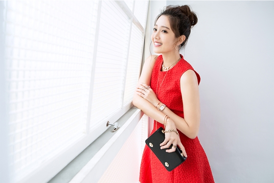 大紅色洋裝的端莊熱情,與深受歡迎的Folli Follie 玫瑰金飾品錶款,相互呼應將戀愛中的女人映襯出絕佳的氣色容貌,FASHIONABLY SILVER系列與HEART4HEART系列項鍊中的愛心造型則在細節中點綴出戀愛中的甜美浪漫。