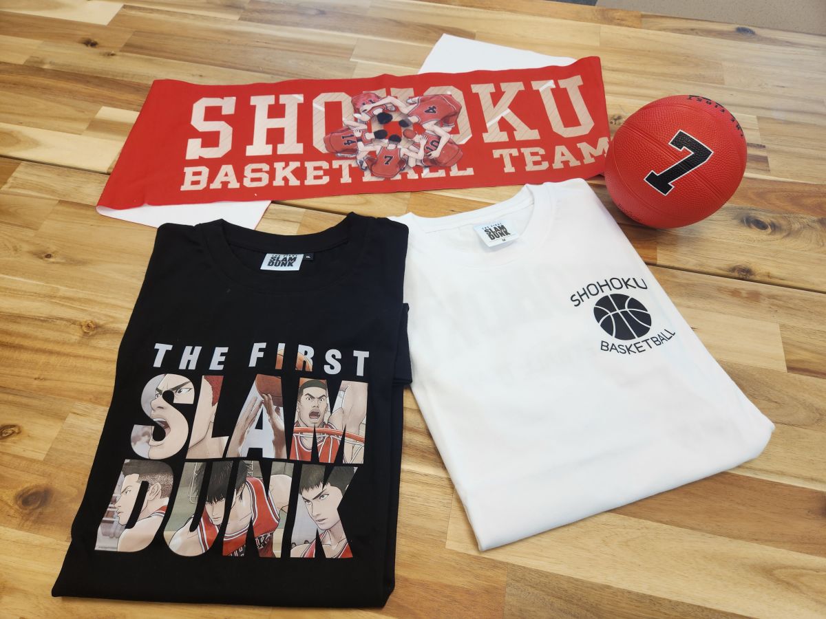 粉絲們快把湘北隊穿上身!快閃店更有「THE FIRST SLAM DUNK Tshirt」以及「THE FISRT SLAM DUNK 全彩運動毛巾」,帶著出門運動都感覺全身熱血了起來,Tshirt有主視覺LOGO黑款與湘北款,小孩子做選擇,老娘我全都要~
