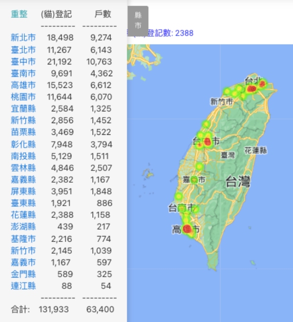 貓派崛起!全台家貓增加數目「比汪星人多20倍」,南投這地方榮登「貓老大區」! 最愛養毛小孩縣市、寵物登記、寵物報戶口、寵登歸戶統計地圖、寵物登記管理資訊網