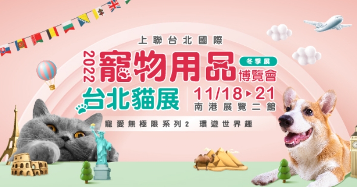 秋冬也有展昭寵物展可以逛!這次冬季寵物展的主題是「環遊世界趣」,將帶著大家一起找尋世界各國毛孩的食衣住行好物,體驗日本風野餐及威尼斯嘉年華等活動,讓心愛的寵物體驗出國環遊世界的氛圍感,此外也規劃一系列公益愛心捐及認養,打造一個健康優質的寵物展!(點我前往官網)
