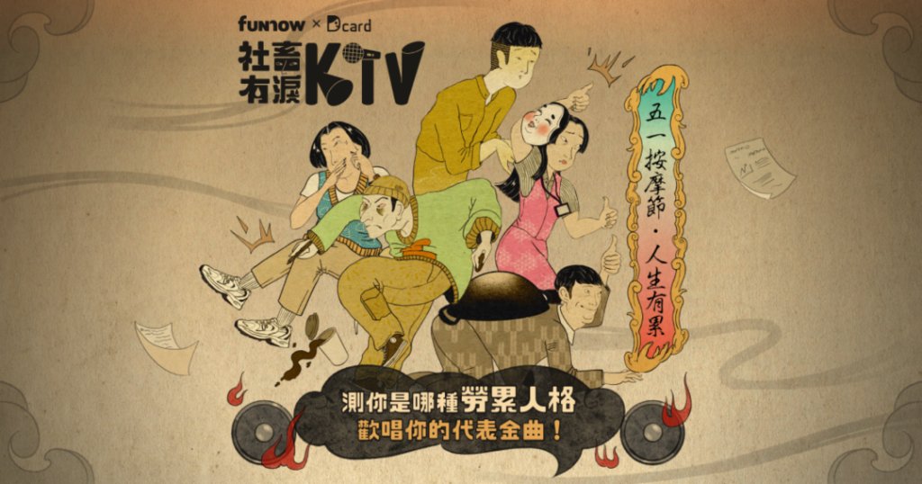 勞工節只放一天怎麼夠!Dcard工作板上推出了一款熱門的「社畜有淚 KTV」心理測驗,來看看妞妞們是什麼特性的社畜以及過勞指數等等,還能測出自己的代表金曲呢!除此之外更攜手「FunNow 五一按摩節」,妞妞們只要做完測驗、完成指定任務,還能再抽萬元按摩行程~