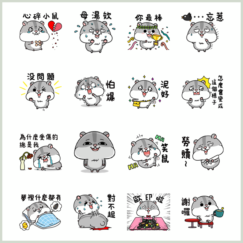 你絕對不能錯過,超Q "倉倉" 倉鼠馬上讓你的聊天室充滿青春朝氣,超好用神回覆錯過可惜,現在就來擁有這組貼圖吧!完成 LINE 購物 APP 指定任務,並將 LINE 購物官方帳號加入好友,即可擁有此貼圖。