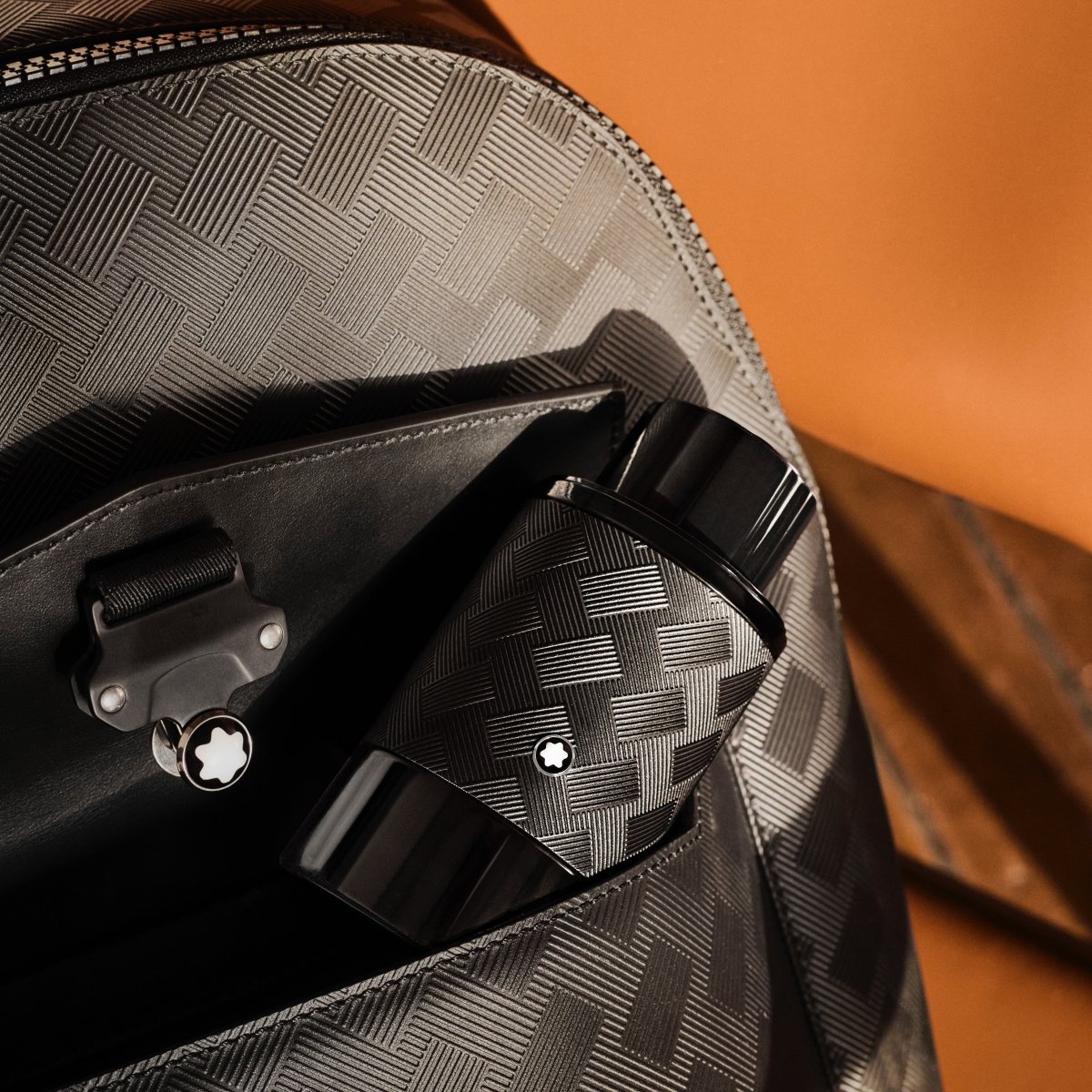 瓶身由義大利佛羅倫斯Montblanc皮具工坊製作與組裝,六芒星標誌於德國製成,並於法國完成包裝。全黑色的漆面玻璃瓶如夜空般深邃,呼應香氛的濃烈本質。霧面現代感黑色外盒,壓印Montblanc Extreme圖案,搭配金色字樣低調奢華,每個細節都流露高雅格調。