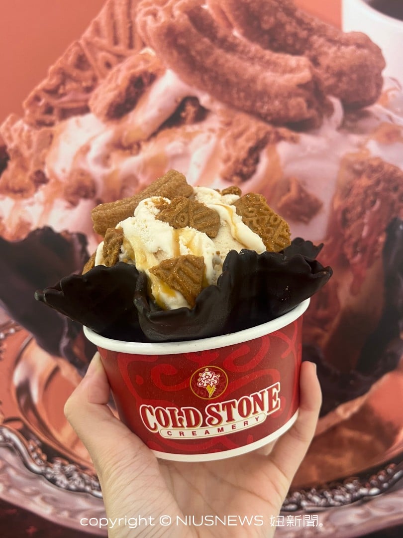 酷聖石首次推出靈感源自「吉那圈甜點」的冬季冰淇淋新品「焦糖點心棒」,以濃郁的吉那圈風味冰淇淋為主角,拌入醇厚焦糖醬與比利時焦糖脆餅,最後加上吉拿棒風味餅乾。酥脆外層與肉桂香氣完美融合,一口咬下宛如剛出爐的溫暖甜點,絕對是冬季最療癒的甜蜜享受!