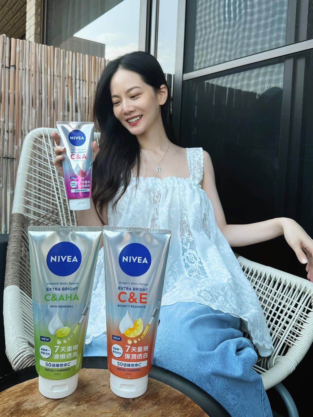對於身體的保養秘訣,喬喬也分享了當媽媽後,因為做家事時間變多,加上很常在地上和小孩玩,發現自己的膝蓋、手的關節都比較暗沉,近期就很常會使用妮維雅超能果萃煥膚透亮精華凝乳 C&AHA,有添加維他命C、榖胱甘肽、菸鹼醯胺等成分,質地也清爽好吸收。