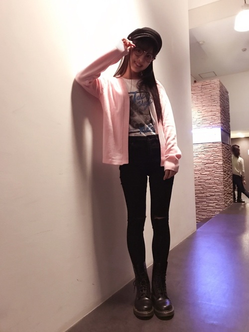 可愛偶像飯窪春菜使用粉紅色外套,把黑白穿搭變得可愛卻又不會太過甜美。