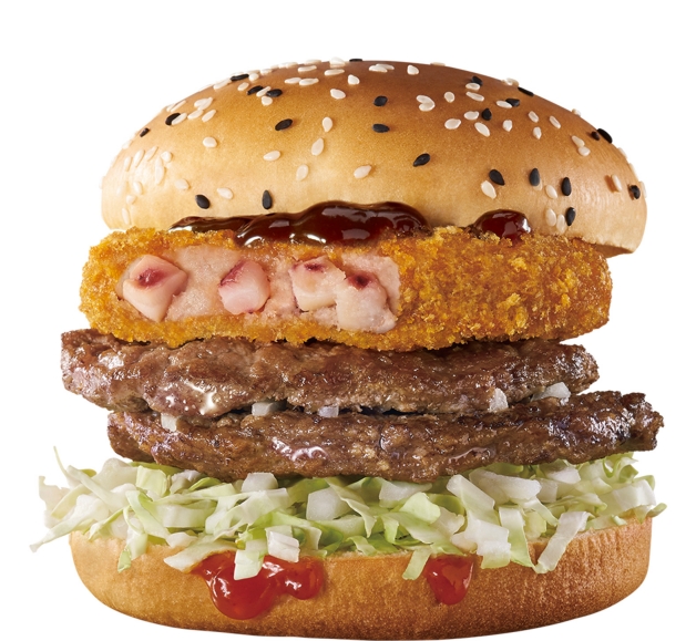 「日式豬排魷魚堡」:7月24日至8月20日期間限定登場(或售完為止),單點124元;經典套餐189元