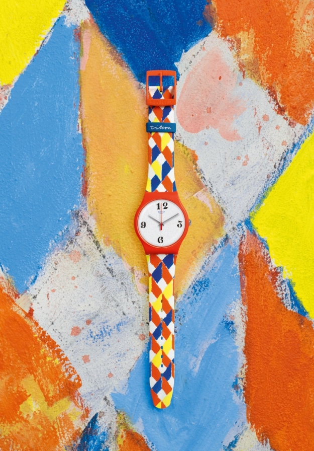 同時,Swatch還是一如既往地在藝術雙年展上推出了藝術家特別款腕錶——THE JOE TILSON VENETIAN WATCH,其靈感來自Tilson的作品《威尼斯康達利尼之石》 (The Stones of Venice Contarini)。這款帶編號的限量款腕錶精彩展現了藝術家用色明亮活潑的特點,再一次將藝術帶入現實生活,傳遞出“Swatch Loves Art”的品牌精神,不斷激勵並推動著Swatch與藝術之間的獨特創意互動,必將成為粉絲們在2019年爭相擁有的錶款。Tilson的藝術作品被原汁原味地展現出來,鉛筆勾勒出的輪廓在錶盤上依舊清晰可見,而飾有歡快明亮的紅黃藍幾何圖案的矽膠錶帶則再現了畫紙上丙烯藝術作品的意韻,令人十分驚豔。深藍錶扣圈上的白色Tilson簽名更引人注目。
