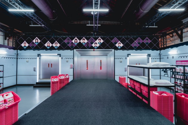 全聯即日起於松山文創園區二號倉庫,打造「全聯魷戲中心直贏店」,可現場排隊、也可預約入場,只要下載並註冊全支付就能免費入場!「全聯魷戲中心直贏店」顯眼的粉色招牌超吸睛,外觀高度還原《魷魚遊戲》第二季影集中最經典的「彩色樓梯迷宮」設計,門口站著粉紅守衛,並搭配入口處響起的劇中經典配樂,彷彿秒穿越進「魷戲賽場」!