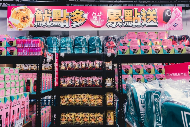 鐵粉必買周邊就到「全聯魷戲中心店中店」一次購齊,除了全聯與Netflix獨家授權的12款聯名商品,包含「陶瓷馬克杯」、「派對碗盤套組」、「木頭人娃娃絨毛玩偶」、「雙層不鏽鋼保溫保冷壺」、「潮流雙肩背包」、「自動開收晴雨傘」、「保溫保冷多用提袋」,可以免積分以會員價購入外,另也加碼推出全球獨家「魷魚遊戲筆記本(4款)」、「魷魚遊戲撲克牌」、「魷魚遊戲徽章(6款)」和「魷魚遊戲中筒襪三入組(黑/白/粉)」,粉絲通通收藏!