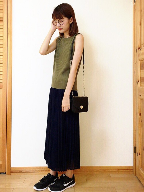 羅紋材質的上衣是近期蠻流行的款式,無論是背心+百褶裙或是羅紋背心裙都可以搭出氣質滿點的感覺~